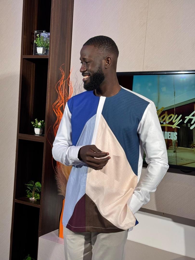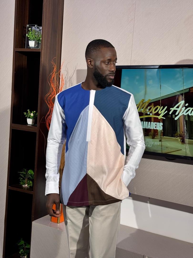 Chemise moderne à manches longues, sublimée par un patchwork géométrique mêlant bleu, beige, marron et blanc. Son design asymétrique et artistique lui donne une allure contemporaine et raffinée. Parfaite pour un style chic et original.